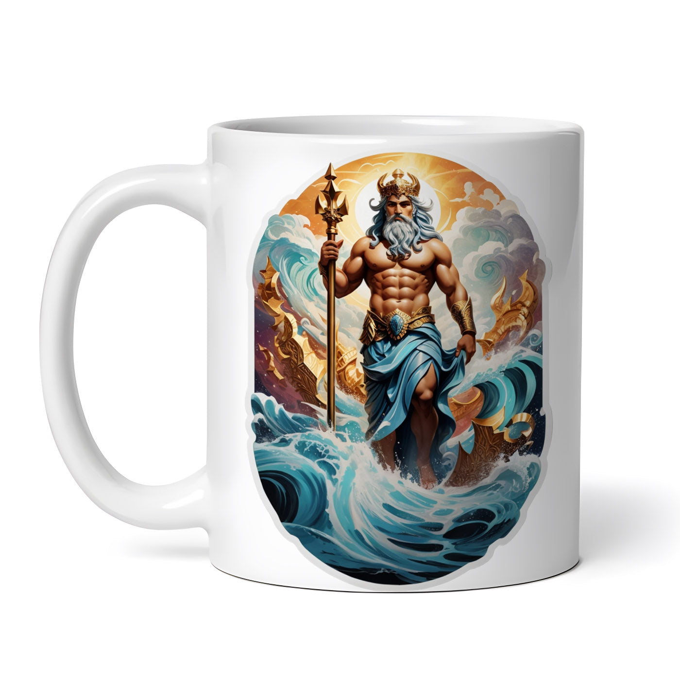 Cana ceramica, Zeul grec Poseidon cu coroana si sceptru, NO8763, 330 ml, Multicolor