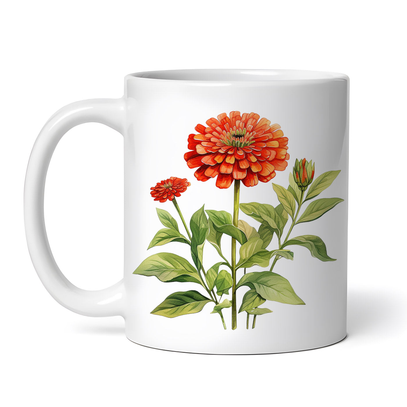 Cana ceramica, Zinnia portocalie, NO3554, 330 ml, Multicolor