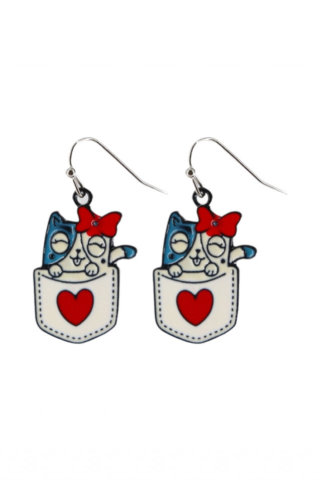Cercei amuzanti, Pisica cu inima, NO10056, Otel inoxidabil, 2.5 cm, Multicolor