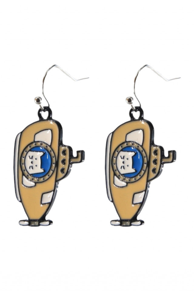 Cercei amuzanti, Pisica in submarin, NO9987, Otel inoxidabil, 2 cm, Multicolor