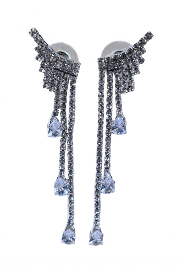 Cercei dama, Eleganti, Zirconiu, Otel inoxidabil, NO1362, 6.7 cm, Argintiu