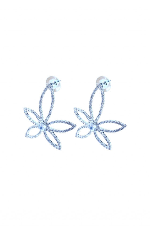 Cercei dama, Floare, Zirconiu, Otel inoxidabil, NO1843, 4.2 cm, Argintiu