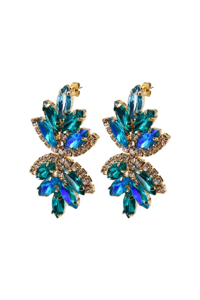 Cercei dama, Floare, Zirconiu, Otel inoxidabil, NO2867, 6.2 cm, Multicolor