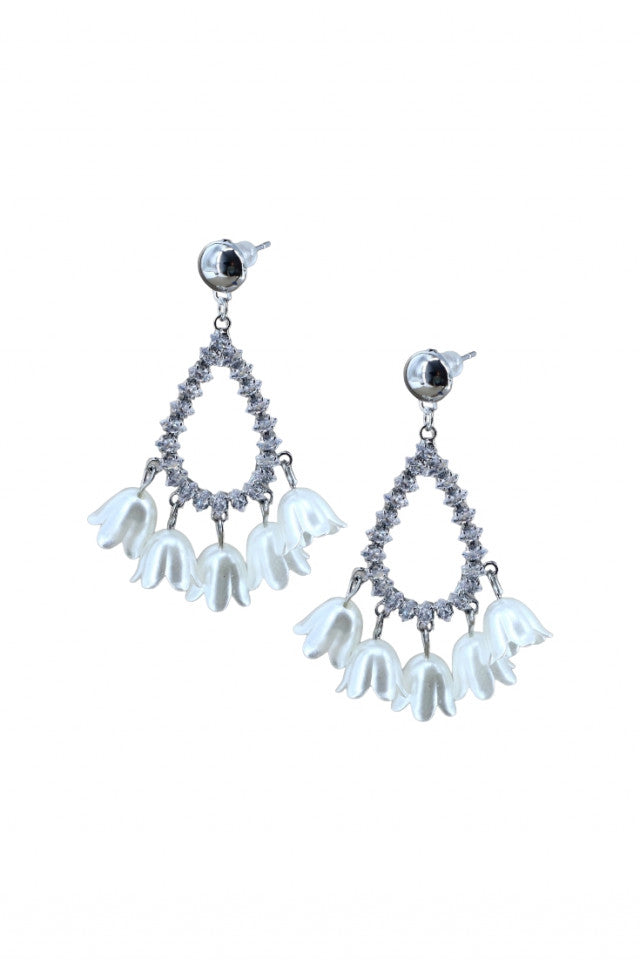 Cercei dama, Flori, Zirconiu, Otel inoxidabil, NO1215, 5 cm, Argintiu