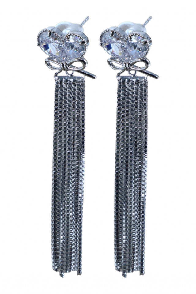 Cercei dama, Funda, Zirconiu, Otel inoxidabil, NO1381, 7.5 cm, Argintiu