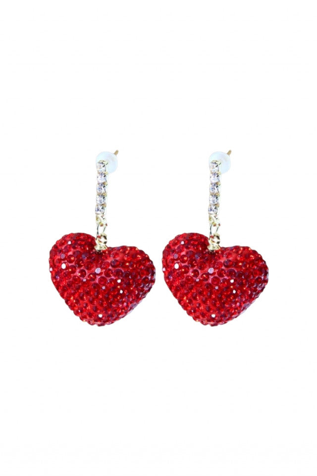 Cercei dama, Inima, Zirconiu, Otel inoxidabil, NO2871, 3.7 cm, Rosu