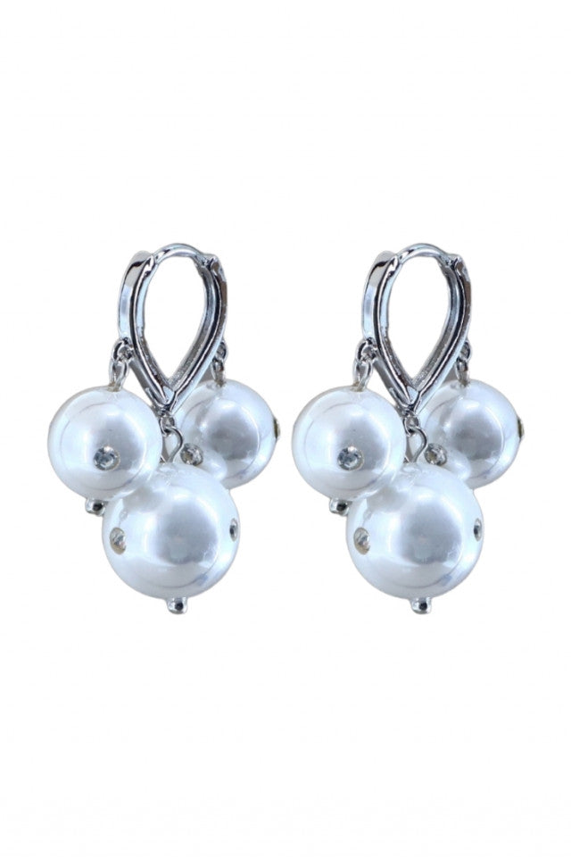 Cercei dama, Inimi, Perle, Zirconiu, Otel inoxidabil, NO1202, 2.5 cm, Argintiu