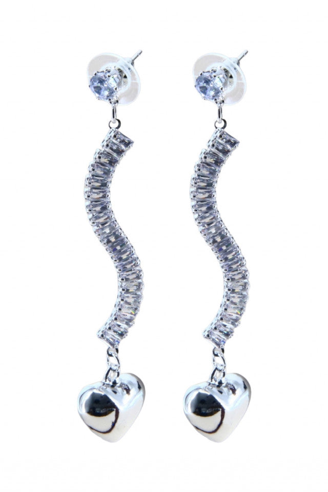 Cercei dama, Inimi, Zirconiu, Otel inoxidabil, NO1187, 7 cm, Argintiu