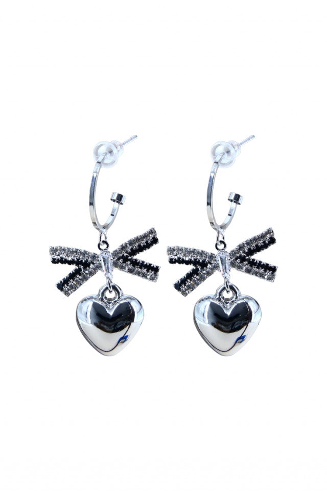Cercei dama, Inimi, Zirconiu, Otel inoxidabil, NO1212, 4 cm, Argintiu