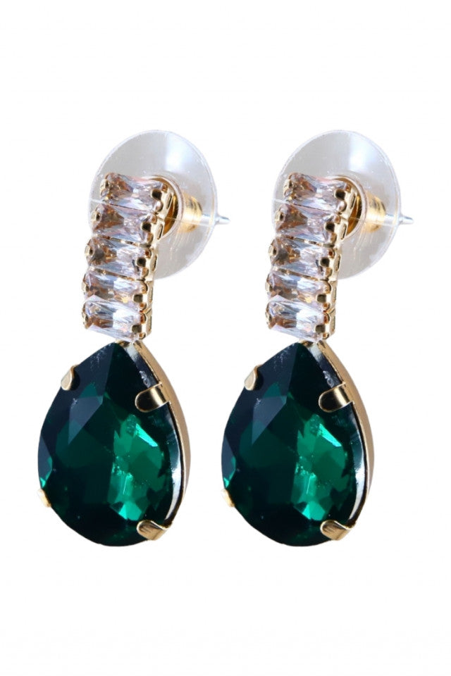 Cercei dama, Lacrima, Zirconiu, NO1305, 3 cm, Verde