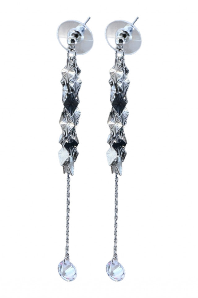 Cercei dama, Lungi, Zirconiu, Otel inoxidabil, NO1348, 7.7 cm, Argintiu