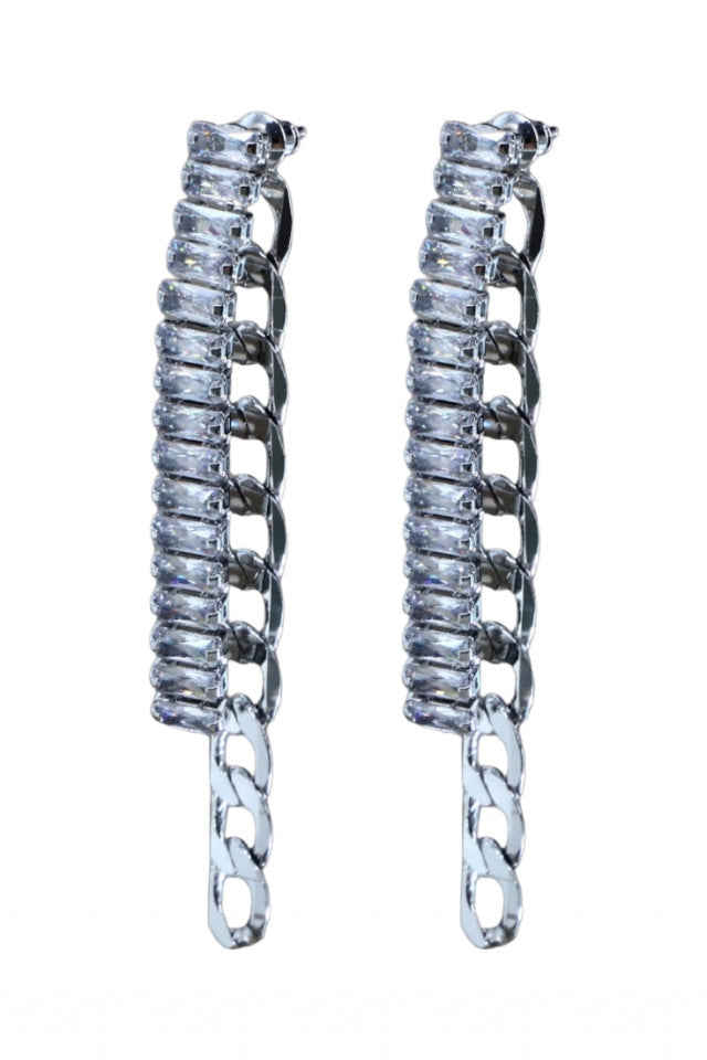 Cercei dama, Lungi, Zirconiu, Otel inoxidabil, NO1369, 6.2 cm, Argintiu