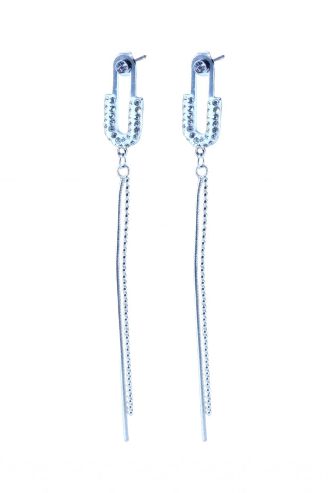 Cercei dama, Lungi, Zirconiu, Otel inoxidabil, NO2860, 9.5 cm, Argintiu
