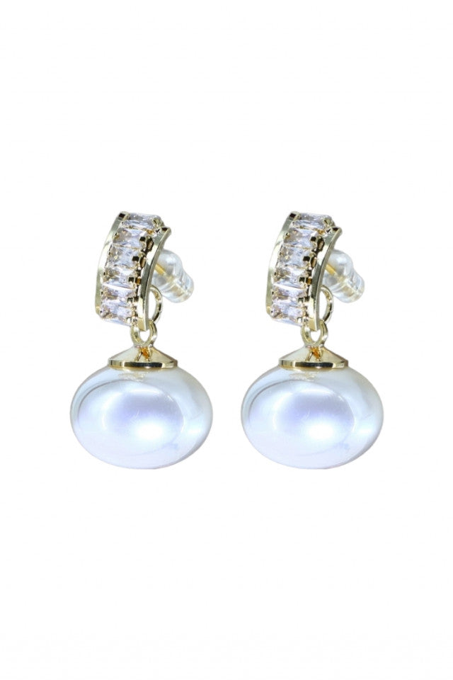 Cercei dama, Perla, Zirconiu, Otel inoxidabil, NO1395, 2.5 cm, Auriu