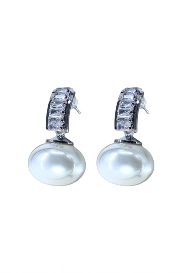 Cercei dama, Perla, Zirconiu, Otel inoxidabil, NO1396, 2.5 cm, Argintiu