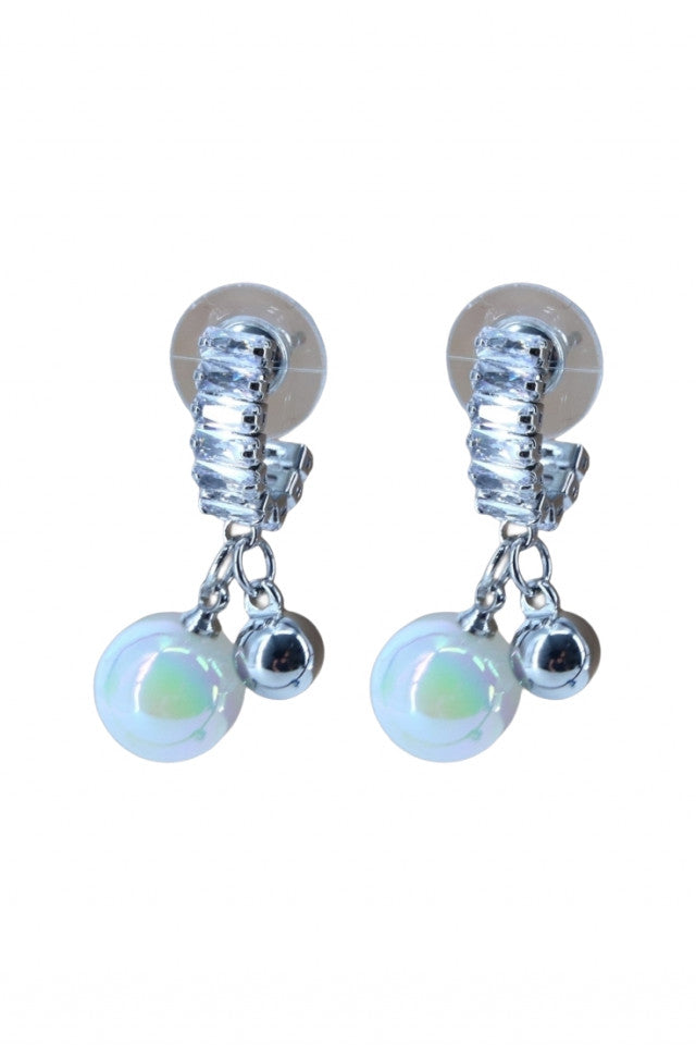 Cercei dama, Perla, Zirconiu, Otel inoxidabil, NO1853, 2.7 cm, Argintiu