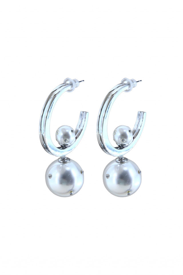 Cercei dama, Perle, Zirconiu, Otel inoxidabil, NO1181, 5 cm, Argintiu