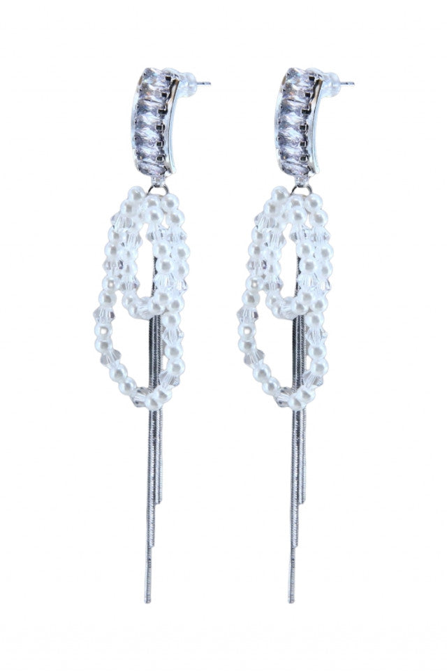 Cercei dama, Perle, Zirconiu, Otel inoxidabil, NO1186, 9 cm, Argintiu