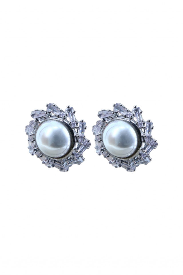 Cercei dama, Perle, Zirconiu, Otel inoxidabil, NO1233, 1.5 cm, Argintiu
