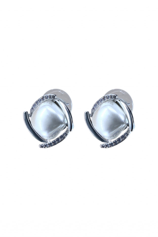 Cercei dama, Perle, Zirconiu, Otel inoxidabil, NO1246, 1.5 cm, Argintiu