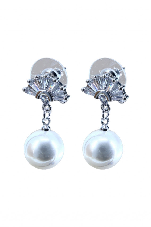 Cercei dama, Perle, Zirconiu, Otel inoxidabil, NO1248, 2.5 cm, Argintiu