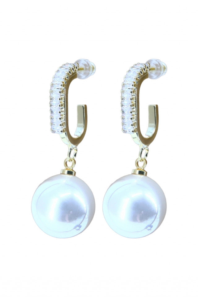 Cercei dama, Perle, Zirconiu, Otel inoxidabil, NO2892, 4 cm, Auriu