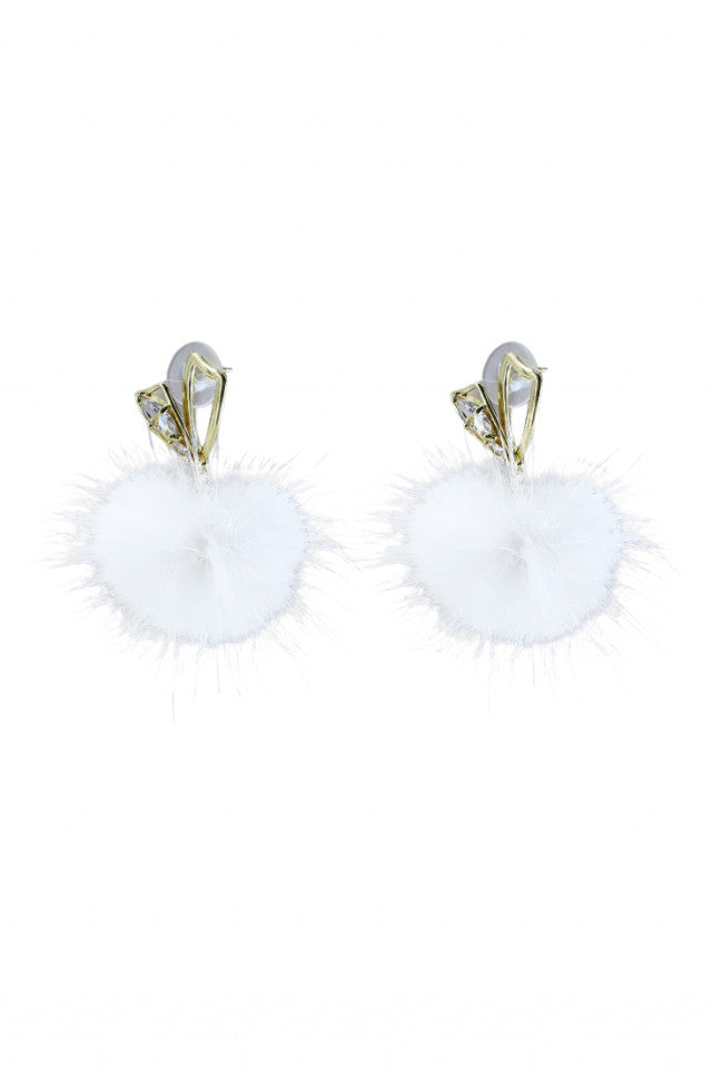 Cercei dama, Puf, Zirconiu, Otel inoxidabil, NO1390, 4.5 cm, Alb