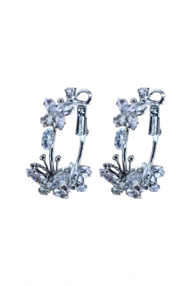 Cercei dama, Rotunzi, Fluturi Zirconiu, Otel inoxidabil, NO1335, 3.1 cm, Argintiu