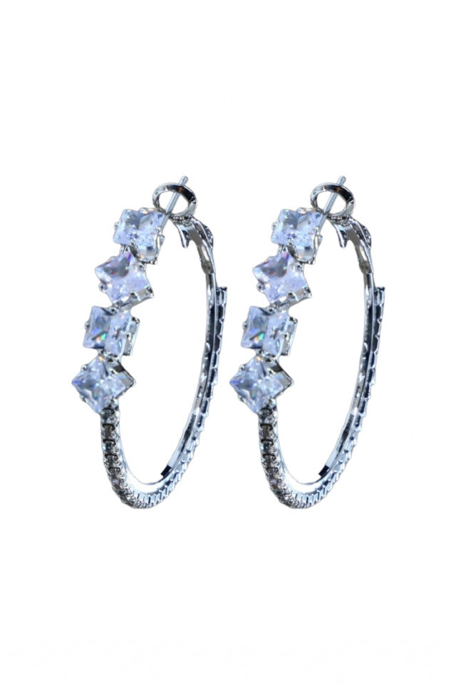 Cercei dama, Rotunzi, Zirconiu, Otel inoxidabil, NO1371, 4.2 cm, Argintiu