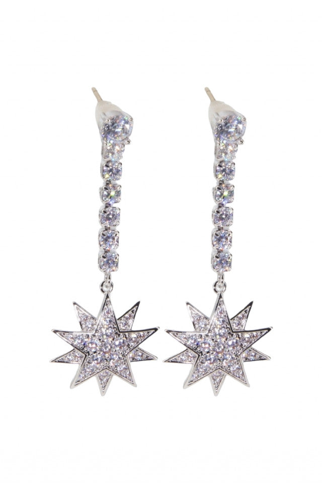 Cercei dama, Stea, Zirconiu, Otel inoxidabil, NO1841, 4.5 cm, Argintiu