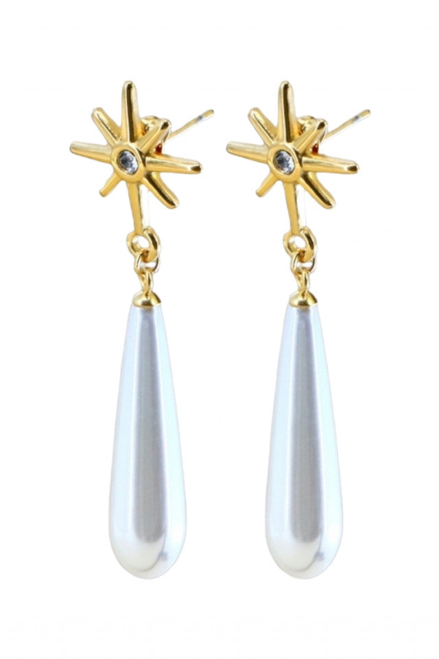 Cercei dama, Stea, Zirconiu, Otel inoxidabil, NO1844, 5.2 cm, Auriu