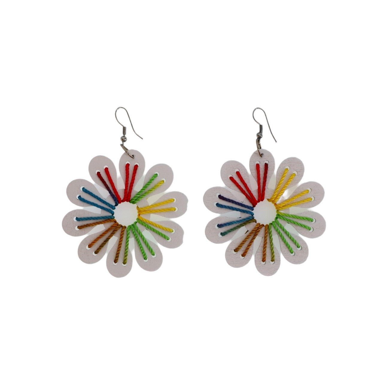 Cercei dama, Vara, Lemn, Handmade, NO6677, 6 cm, Alb