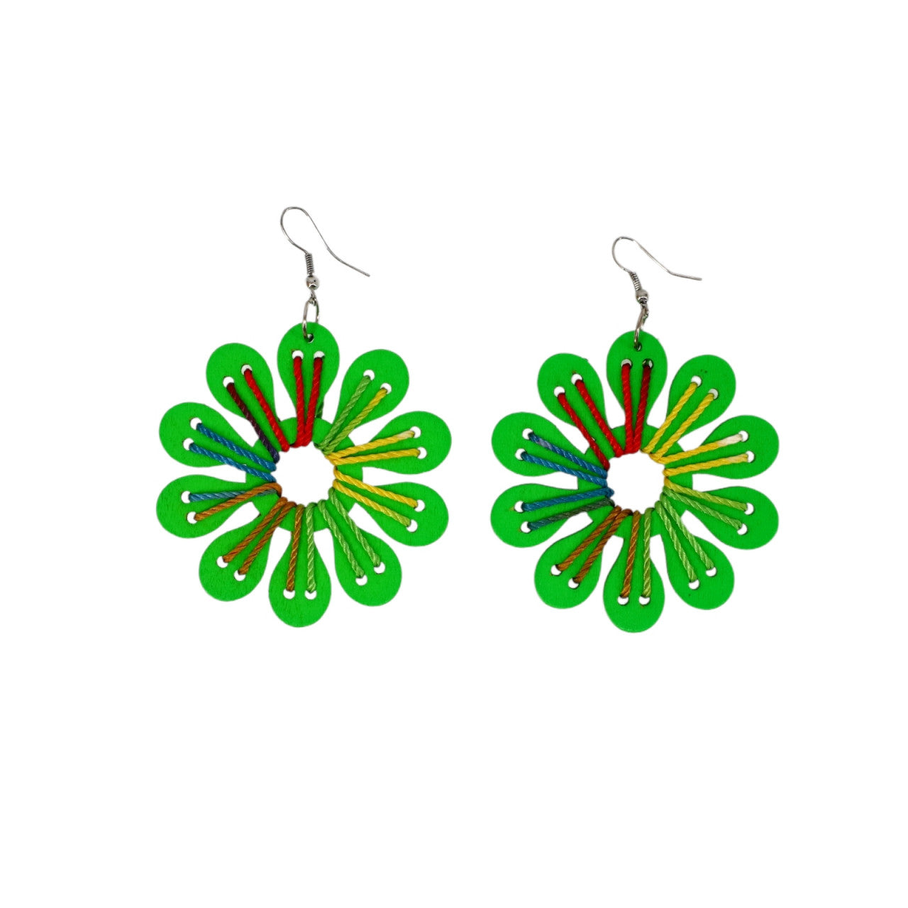 Cercei dama, Vara, Lemn, Handmade, NO6678, 6 cm, Verde