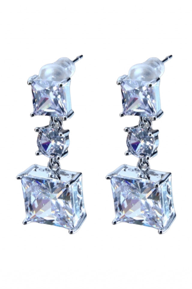 Cercei dama, Zirconiu, Otel inoxidabil, NO1231, 2.5 cm, Argintiu