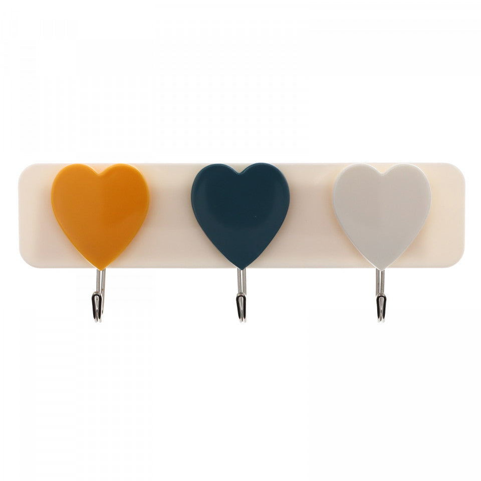 Cuier cu design modern, cu 3 agatatori, model inimi, CM1, 20.5 x 5 cm, Multicolor