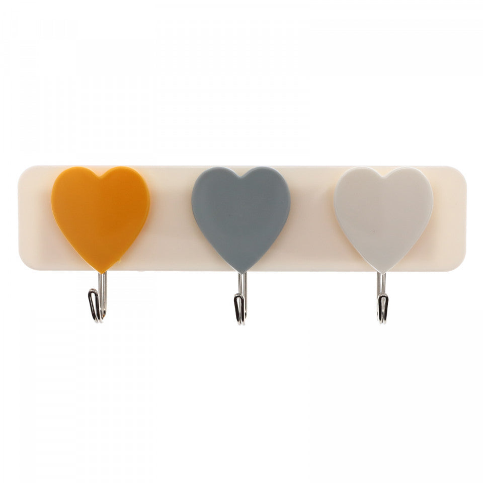 Cuier cu design modern, cu 3 agatatori, model inimi, CM5, 20.5 x 5 cm, Multicolor