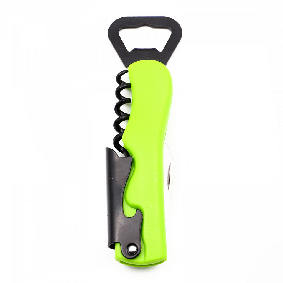 Desfacator de sticle, tirbuson si cutit, 3 in 1, Verde, 13.5 cm