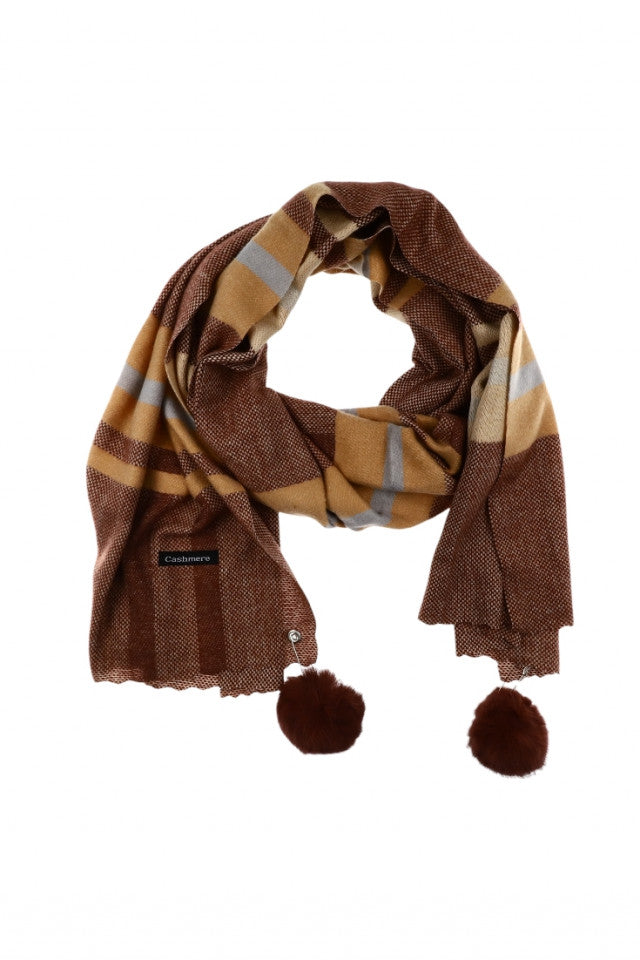 Esarfa de dama, din casmir, cu ac si ciucuri, CSM46, 190 x 65 cm, Maro