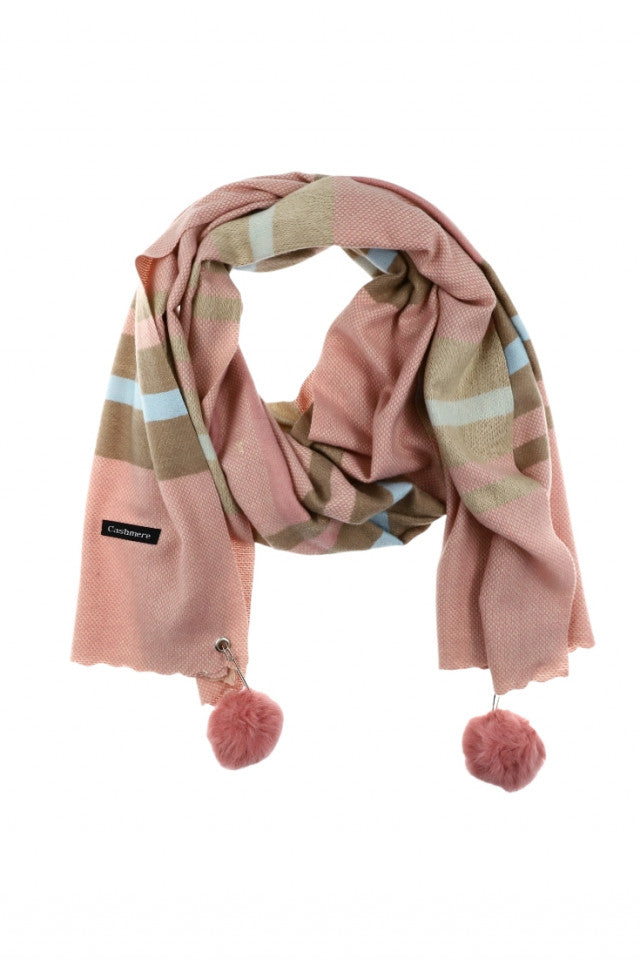 Esarfa de dama, din casmir, cu ac si ciucuri, CSM49, 190 x 65 cm, Roz