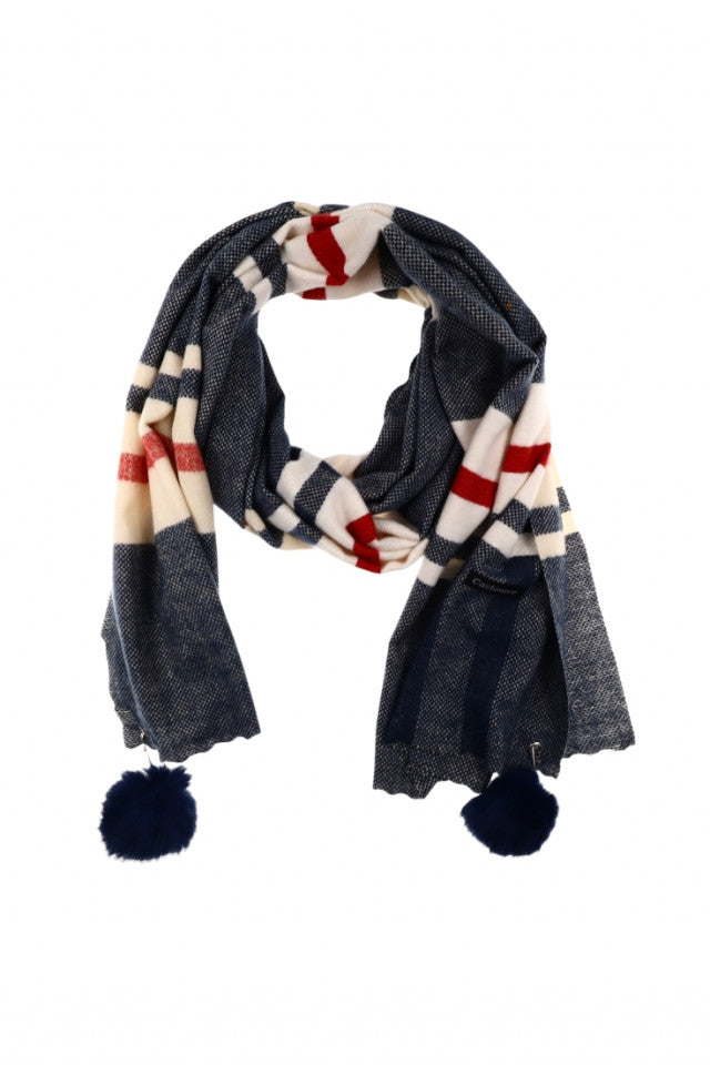 Esarfa de dama, din casmir, cu ac si ciucuri, CSM51, 190 x 65 cm, Gri / Alb