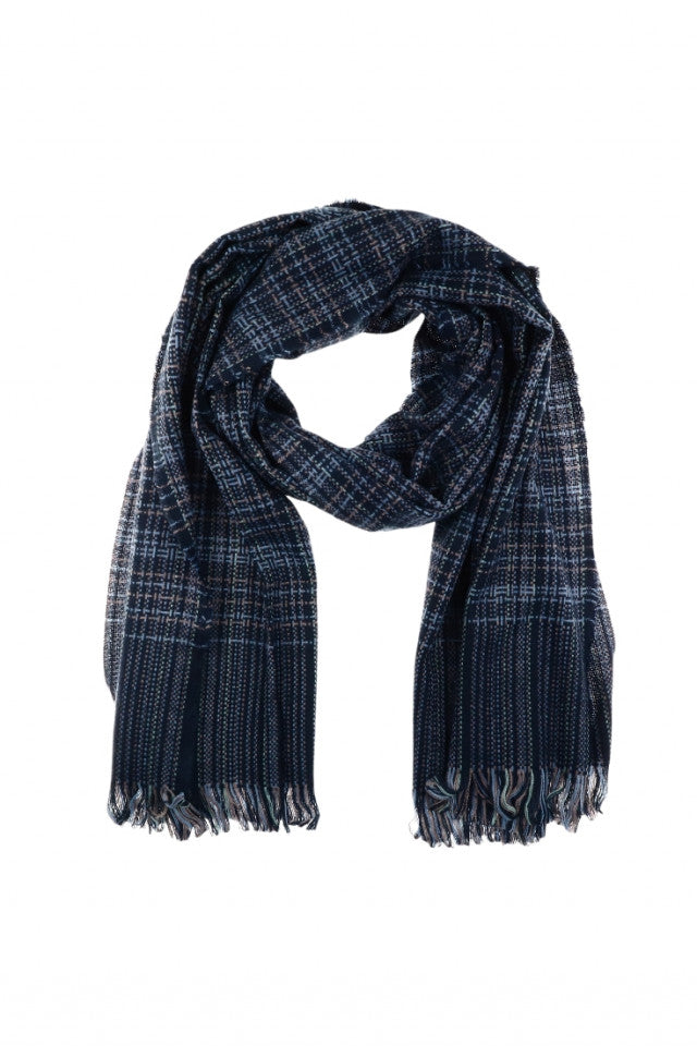 Esarfa de dama, din casmir, cu franjuri, Csm10, 190 x 70 cm, Bleumarin