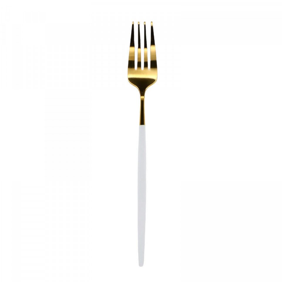 Furculita din inox, in stil Portughez, Deluxe, 21.5 x 2.7 cm, Alb/Auriu