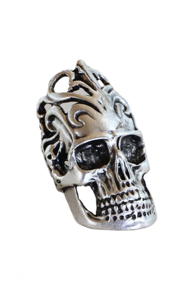 Inel otel inoxidabil, NO681, Craniu, Marime ajustabila, Argintiu