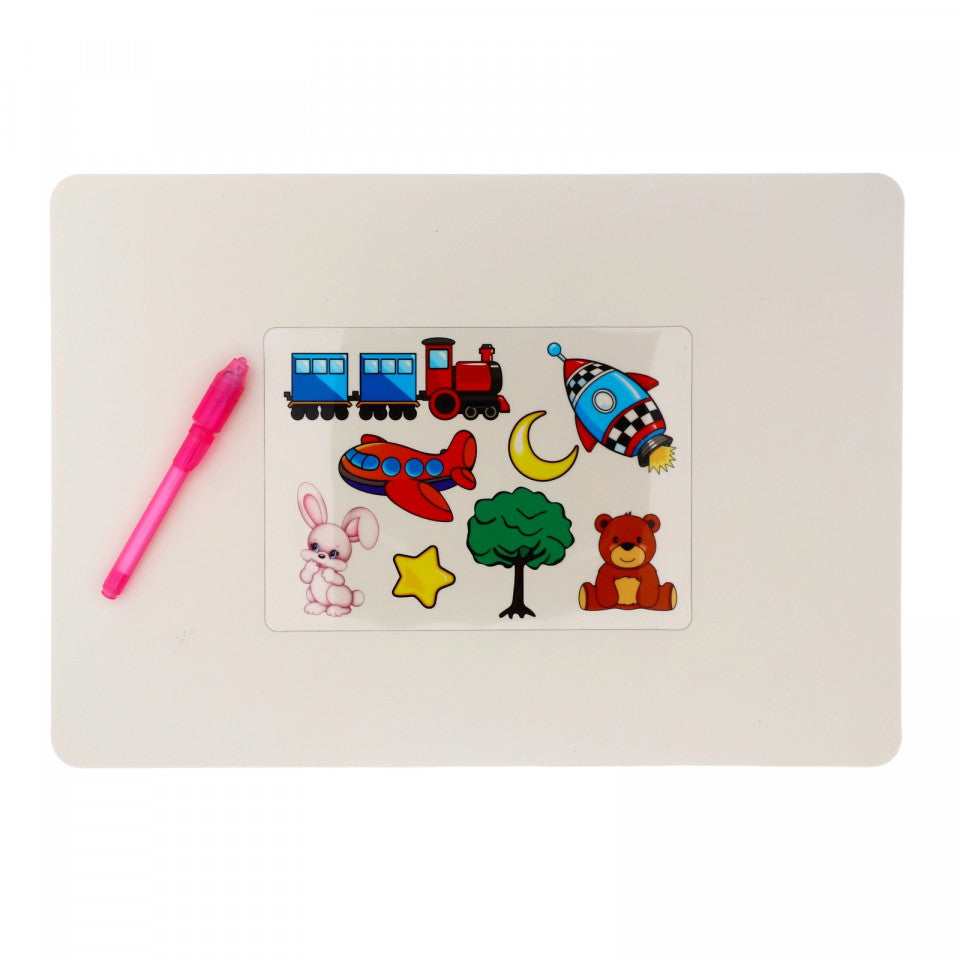 Picteaza impreuna cu copilul tau pe tabla de pvc fosforescenta iar dupa terminarea desenului inchide lumina pentru a putea admira desenul.