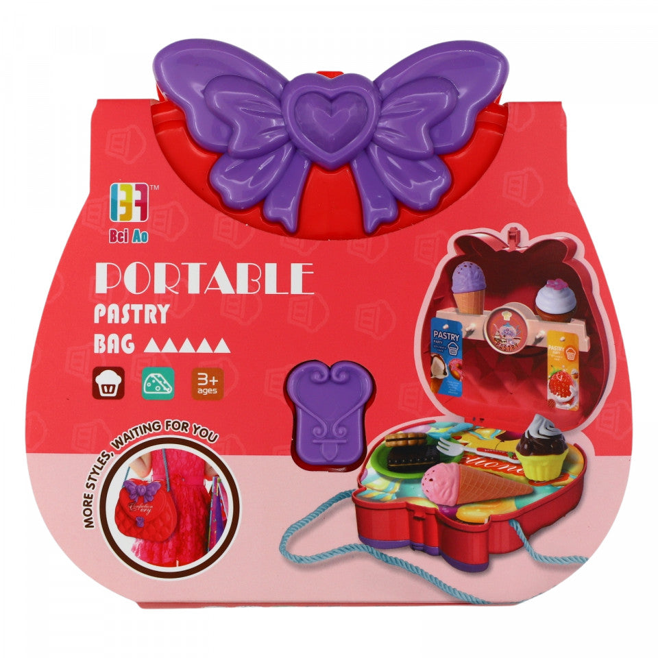 Jucarie de rol, interactiva, Patiserie, gentuta cu bareta, model fundita, 15 piese, Rosu