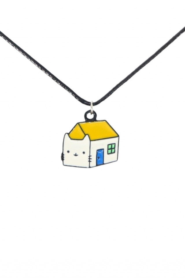Lantisor cu pandantiv, Casa pisica, NO1018, 50 cm, Multicolor