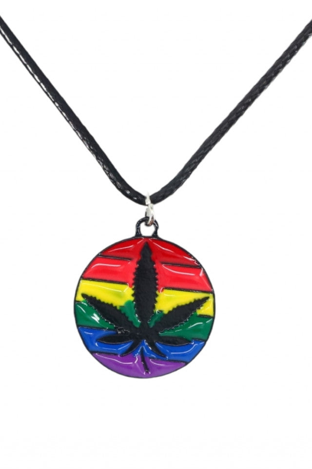 Lantisor cu pandantiv, Frunza Canabis, NO1175, 50 cm, Multicolor