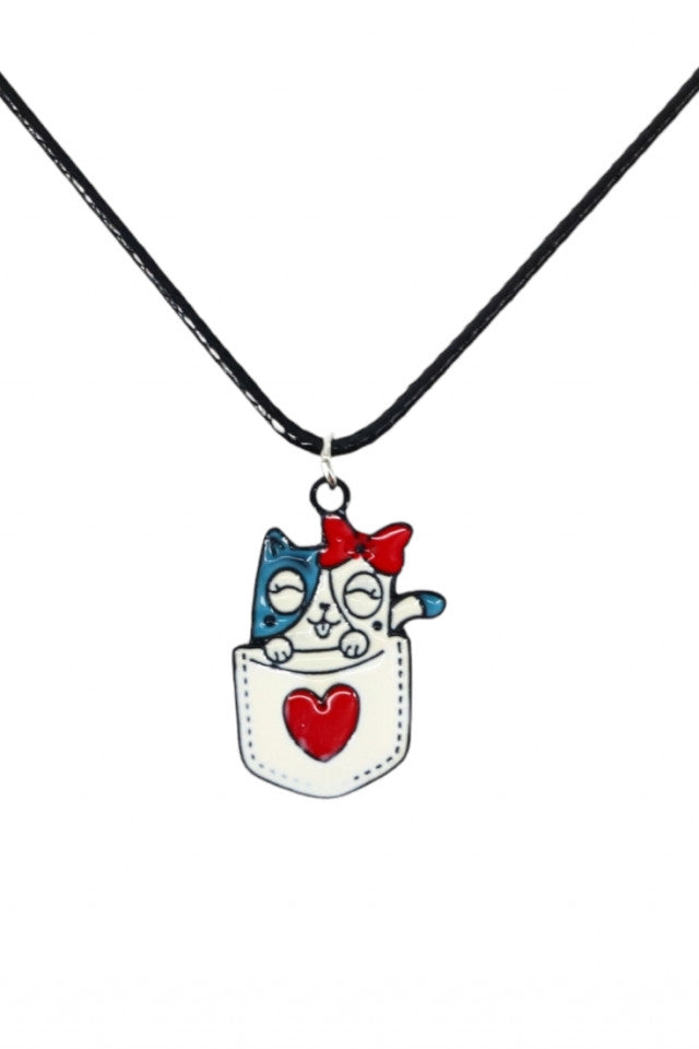 Lantisor cu pandantiv, Pisica love, NO1078, 50 cm, Multicolor