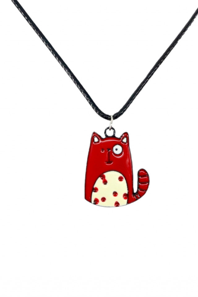 Lantisor cu pandantiv, Pisicuta rosie, NO1007, 50 cm, Multicolor