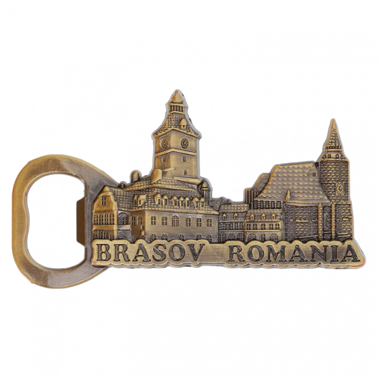 Magnet de frigider, Brasov, Romania, Desfacator sticle, NO432, 4.3 x 18.5 cm, Auriu